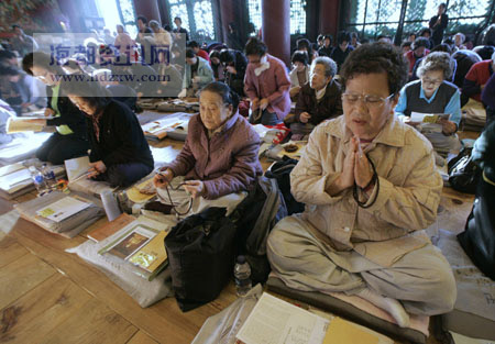 韓國婦女在寺廟里為參加高考的孩子祈禱