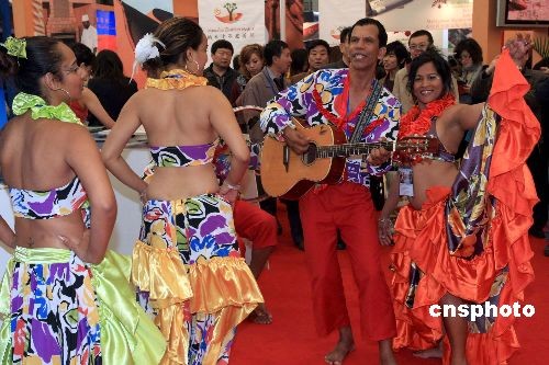 非洲諸多國家看好中國公民旅游潛力,在上海“二00八中國國際旅游交易會”上,載歌載舞推介旅游資源。新社發 潘索菲 攝