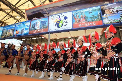 11月20日,在上海舉行的“二00八中國國際旅游交易會”上,臺灣少數民族歌舞加上臺灣旅游主題展區,成為交易會上精彩亮點。中新社發 潘索菲 攝