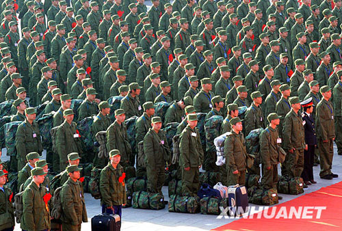 12月10日,新兵們?cè)跉g送儀式上列隊(duì)。當(dāng)日,江蘇省暨南京市歡送新兵入伍儀式在南京火車(chē)站廣場(chǎng)舉行,全省1240多名新兵從這里起程,奔赴軍營(yíng)。孫參 攝(圖片來(lái)源:新華網(wǎng))