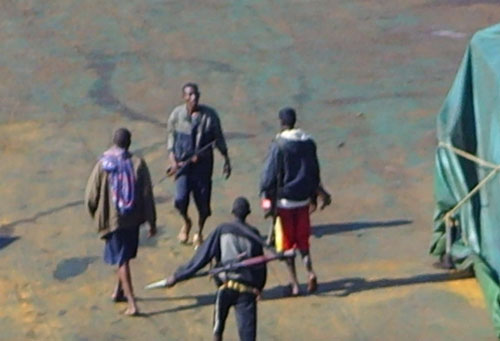 危急關(guān)頭,馬來西亞反海盜中心來電告知:多國部隊(duì)的直升機(jī)趕來了。亞丁灣時(shí)間11時(shí)09分,直升機(jī)抵達(dá)上空。并擊沉一艘海盜小艇。直升機(jī)因?yàn)橛土嫌邢蓿灰粫?huì)兒就返回基地加油,直升機(jī)雖然飛走,但“振華4號”上的攻防戰(zhàn)進(jìn)入了“相持階段”。