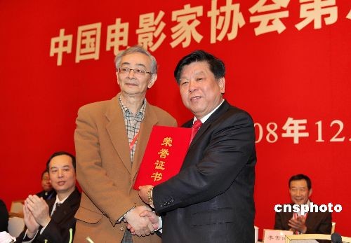 中國文聯(lián)黨組書記胡振民給著名導演吳貽弓頒發(fā)榮譽證書。