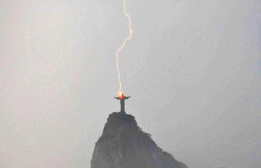 2月10日,巴西里約熱內(nèi)盧基督救世主雕像遭遇雷擊。