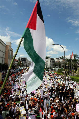 1月3日,印尼民眾舉行游行活動抗議以色列軍隊(duì)襲擊加沙地帶。