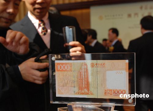 新鈔票正面圖案為澳門世界文化遺產名錄中的景點,鈔票背面采用澳門中國銀行大廈為主景圖案。中新社發 畢永光 攝