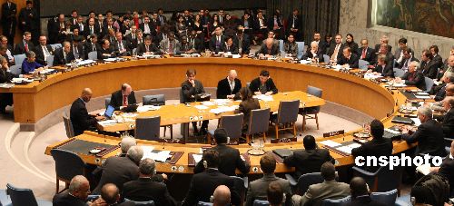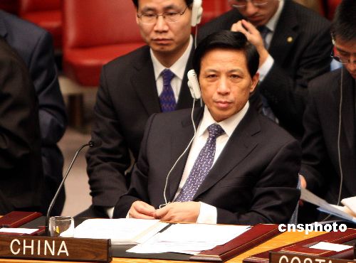 聯合國安理會1月6日就加沙局勢舉行緊急會議。中國常駐聯合國代表張業遂在會上發言,呼吁安理會盡快行動,通過一項決議,促成以巴立即;。包括巴勒斯坦民族權力機構主席阿巴斯、美國國務卿賴斯、英國外相米利班德,以及沙特、埃及、約旦、黎巴嫩、摩洛哥、卡塔爾、敘利亞等阿拉伯國家外長和安理會理事國常駐聯合國代表都出席會議。中新社發 李靜 攝