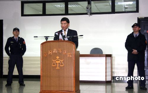 圖為臺灣高等法院發言人溫耀源在記者會上宣布裁定結果并解釋裁定書。中新社發 陳立宇 攝