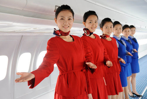 6名準(zhǔn)空姐把自己在課堂上所學(xué)過的知識(shí)統(tǒng)統(tǒng)演示了一遍。