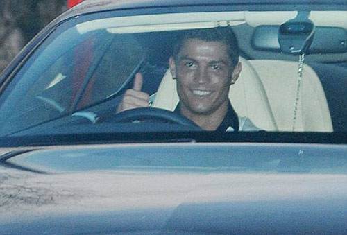 C羅在車禍后,仍然到曼聯(lián)俱樂部進(jìn)行訓(xùn)練。圖為在離開訓(xùn)練基地時(shí),C羅面對(duì)鏡頭微笑示意。