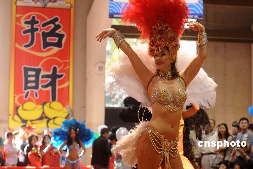 桑巴熱舞為洛杉磯華人“廟會”助興。中新社發 張煒 攝