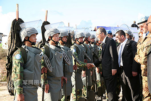 潘基文視察維和部隊 專程接見中國掃雷官兵(3)