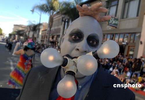 第三十二屆“搗蛋”大游行(Doo Dah Parade)一月十八日在加州帕薩迪納市舉行。“搗蛋”大游行號(hào)稱(chēng)“搞笑版”美國(guó)玫瑰花車(chē)大游行,創(chuàng)始于一九七八年,參加“搗蛋”大游行的表演者個(gè)個(gè)竭盡搞笑、夸張之能事,讓數(shù)萬(wàn)名觀眾享受開(kāi)心一刻。中新社發(fā) 張煒 攝
