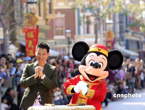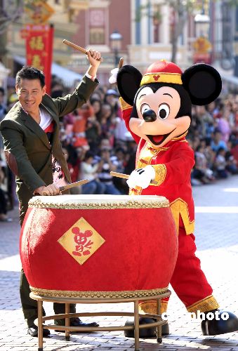 圖:張學友與卡通米奇香港迪士尼為來賓賀新年