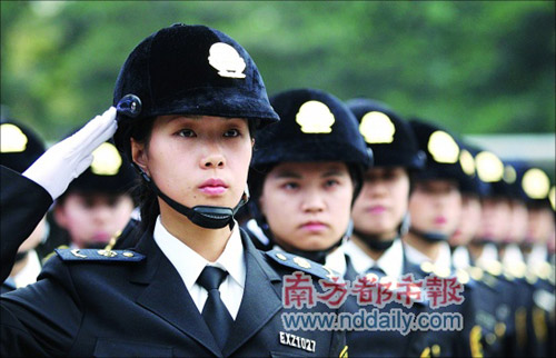 騎士頭盔、靴子、緊身衣,22名女隊員身著新制服集結宣誓,開電瓶車上路巡街,沿途引起市民驚艷注目。昨日(2009年1月20日)上午,佛山首支城管執法女子特勤中隊掛牌上路,佛山欲借此提升打造城管品牌形象。