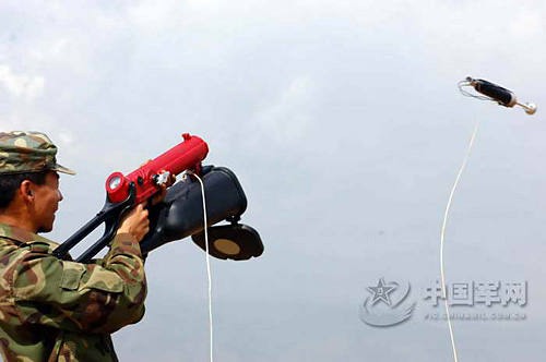 由我國自主研發(fā)采用空氣推進(jìn)技術(shù)生產(chǎn)的,它在一只0.5L氣瓶內(nèi)灌入20Mpa的壓縮空氣,其射程為50~90m,具有體積小,重量輕,安全可靠,攜帶方便等特點(diǎn),得到掃雷作業(yè)手的鐘愛。