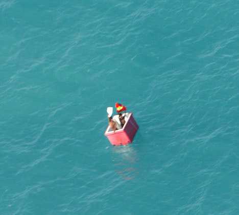 這兩個20多歲的緬甸漁民,受雇于泰國漁船,去年12月23日,漁船在澳洲北部海岸外翻覆,船上20人落海。他們兩人擠進面積只有一張小桌子大的冰桶里,在鯊魚出沒的海上漂流了25天,日前才被澳洲海岸巡防隊的飛機發現。