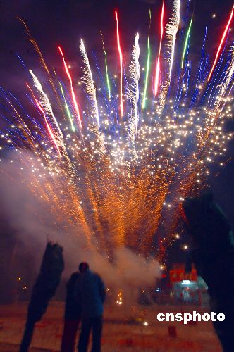 1月26日中國農歷新春到來之時,北京市民燃放煙花爆竹,度過不眠之夜,爆竹聲聲過春節。中新社發 鄒憲 攝