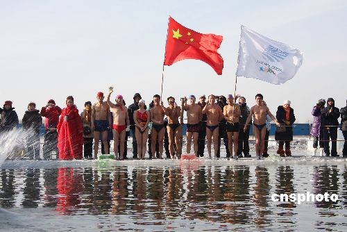 圖:大冬會倒計時10天 冬泳健兒激情表演助威(2)