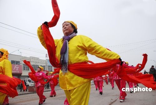 2月9日是元宵佳節,山東省棗莊市山亭區各鄉鎮的農民游藝隊開展民俗“游街”活動,高蹺、竹馬、舞龍等傳統民俗表演精彩紛呈。中新社發 劉明祥 攝