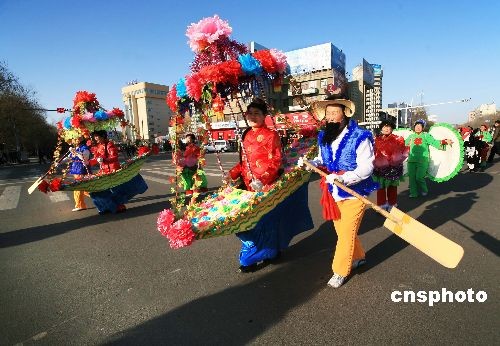 2月9日上午,新疆伊寧市舉行“鬧元宵”社火展演,來自全市20個鄉鎮、街道的1300余名農牧民及社區工作人員走上街頭,舞龍獅、敲腰鼓、跳民族歌舞,敲出元宵節的快樂,舞出了邊疆各族兒女的豪邁激情。中新社發 留光駐影 攝