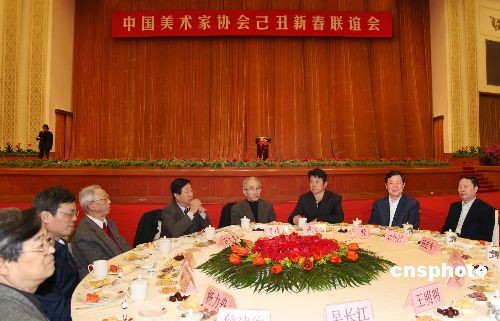 2009年2月10日下午,中國美術家協會己丑新春聯誼會在人民大會堂隆重舉行。中國美術家協會會員及各界友人近千人歡聚一堂, 共迎佳節。中新社發 王保勝 攝