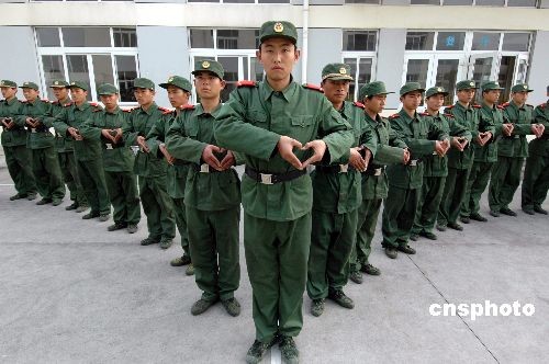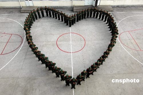 浙江溫州邊防支隊新兵連戰士們在籃球場上組成一個美麗的軍綠色“心”形圖案,給遠方的父母和女友送去祝福。中新社發 吳水斌 攝
