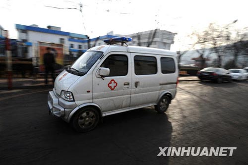2月22日,一輛救護車正趕往事故現場。燕雁 攝