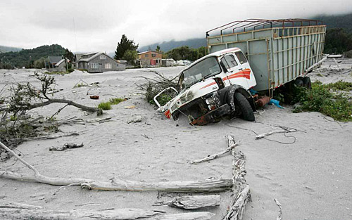 2月26日,在智利首都圣地亞哥以南1200多公里的柴滕市,城市街道被火山灰覆蓋。