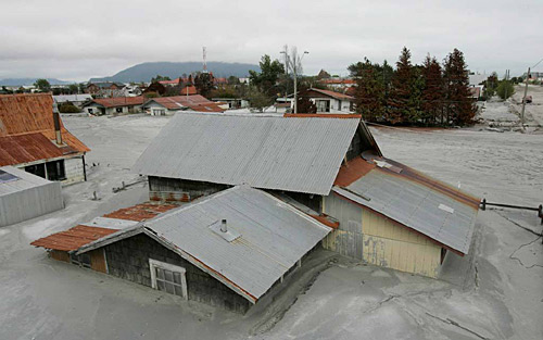 這是2月26日在智利首都圣地亞哥以南1200多公里的柴滕市拍攝的被掩埋在火山灰中的房屋。佩德羅·門多薩 攝