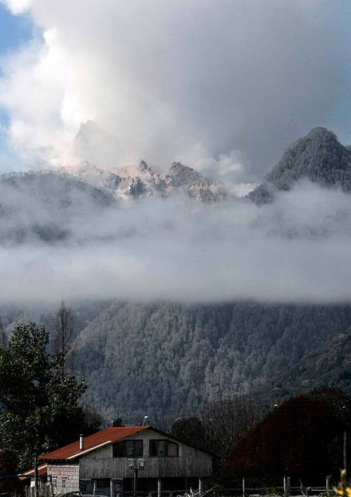 2月26日,在智利首都圣地亞哥以南1200多公里的柴滕市,柴滕火山噴發出的煙霧迷漫在空中。