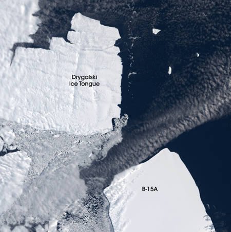 冰川相近運動圖:本圖攝于2005年1月21日,顯示的是兩大冰塊接近的過程。