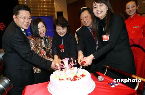 3月8日晚,參加全國(guó)政協(xié)十一屆二次會(huì)議的婦聯(lián)界委員們?cè)隈v地賓館共度婦女節(jié),并為當(dāng)日生日的委員們共同慶生。中新社發(fā) 傅丹丹 攝