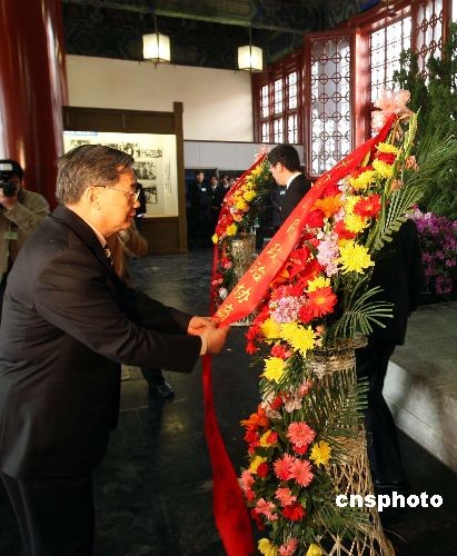 全國人大常委會(huì)副委員長、民革中央主席周鐵農(nóng)代表民革中央向?qū)O中山先生像敬獻(xiàn)花籃。