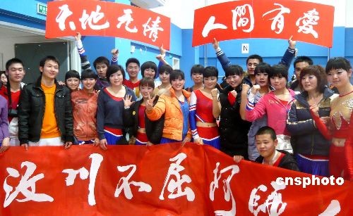 圖為四川汶川地震災區阿壩師專的學生北京參加健美操大賽。中新社發 錢興強 攝