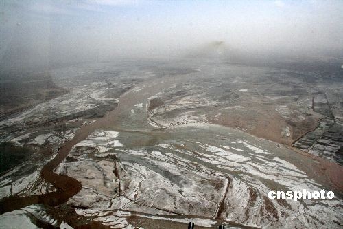 黃河內蒙古河段冰凌區。中新社發 尤中原 攝
