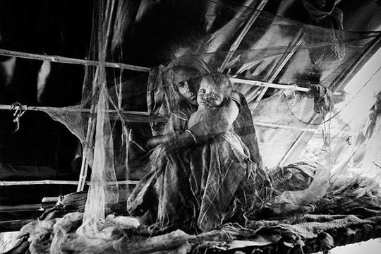 印度比哈爾邦發生洪水災害后,在難民營的一對母女。(當代問題一等獎)