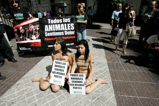 組圖:美女上演"裸身切割" 呼吁保護動物(3)