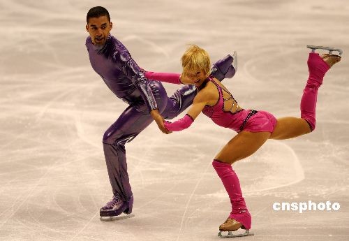 當(dāng)?shù)貢r間3月24日晚,2009年花樣滑冰世界錦標賽在洛杉磯正式開幕。在當(dāng)天晚上舉行的雙人滑短節(jié)目比賽中,衛(wèi)冕冠軍德國組合薩維琴科和索爾科維充滿現(xiàn)代感的表演征服了全場觀眾和裁判,最終以72.30分的最高分名列第一。中新社發(fā) 張煒 攝