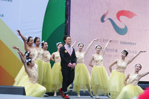 韓正揭曉了上海世博會志愿者主口號“世界在你眼前,我們在你身邊”。殷一璀致辭對志愿者們提出要求:要成為“更美的城市”的建設者,“更好的生活”的創造者,“更深的情誼”的傳播者。國際展覽局秘書長洛塞泰斯專程發來賀信。儀式在陳奕迅演唱的上海世博會志愿者歌曲“在你身邊”中精彩落幕。 徐潔晨 攝