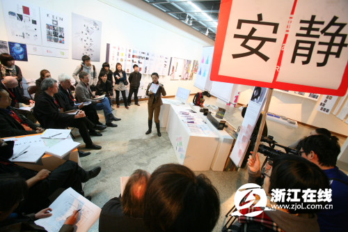 這是今天下午在中國(guó)美院美術(shù)館中德碩士CDK項(xiàng)目的答辯會(huì),參加答辯的碩士由中國(guó)美院和柏林藝術(shù)大學(xué)合作培養(yǎng)。用網(wǎng)絡(luò)的話說(shuō),這是一個(gè)很開放而且酷斃了的畢業(yè)答辯會(huì),堪稱中國(guó)史上最牛。作品也很有意思,比如說(shuō)“美院象山校區(qū)導(dǎo)向標(biāo)志設(shè)計(jì)”,“杭州地鐵標(biāo)識(shí)設(shè)計(jì)”……大多設(shè)計(jì)和我們生活息息相關(guān),甚至和杭州這個(gè)城市很合拍,看了展覽你可能對(duì)現(xiàn)有的一些城市細(xì)節(jié)不滿。