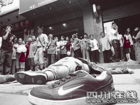 遂州中路是遂寧的繁華街道,現(xiàn)場(chǎng)很快聚集了很多圍觀市民。圍觀市民看見:躺在地上的死者很像一個(gè)高中生,年齡十八九歲,右手挽有一黑色雙肩背包。“25日是高考成績(jī)公布的日子,這個(gè)人又像高中生,是不是他沒考好而跳樓自殺哦。”“唉!榜上無名,腳下有路,再怎么說也不應(yīng)該走這條路呀!”圍觀市民議論紛紛,“高考生跳樓”的消息不脛而走。