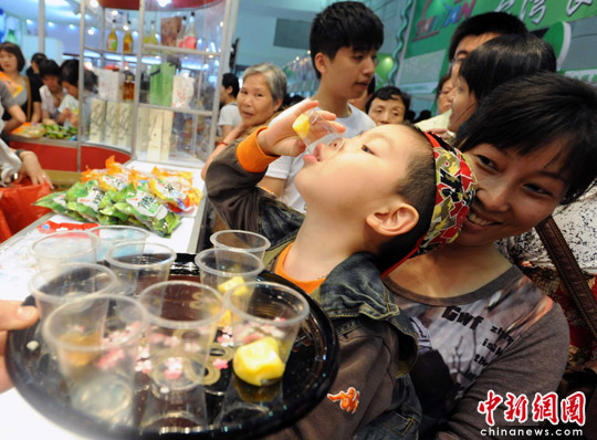 5月22日,絡(luò)繹不絕的福建福州市民逢周六假日,蜂擁而至正在福州海峽國際會(huì)展中心舉行的第十二屆“海交會(huì)”臺(tái)灣館“臺(tái)灣特色食品展區(qū)” 爭先品嘗、購買臺(tái)灣特色美食。當(dāng)日,為期5天的第十二屆海峽兩岸經(jīng)貿(mào)交易會(huì)圓滿落幕。