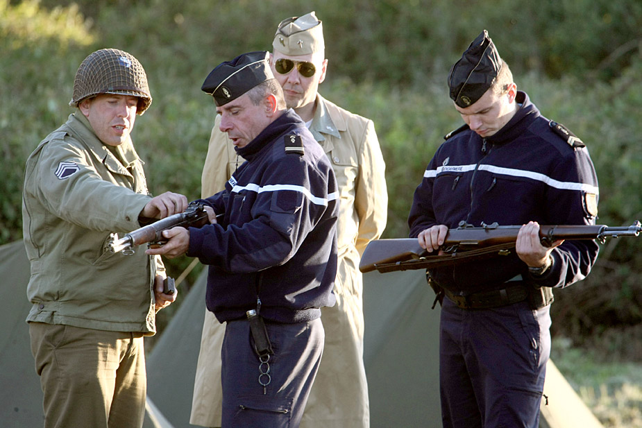 美英法等國士兵穿上二戰時期軍服在法國諾曼底海灘舉行“登陸戰”紀念諾曼底登陸65周年。