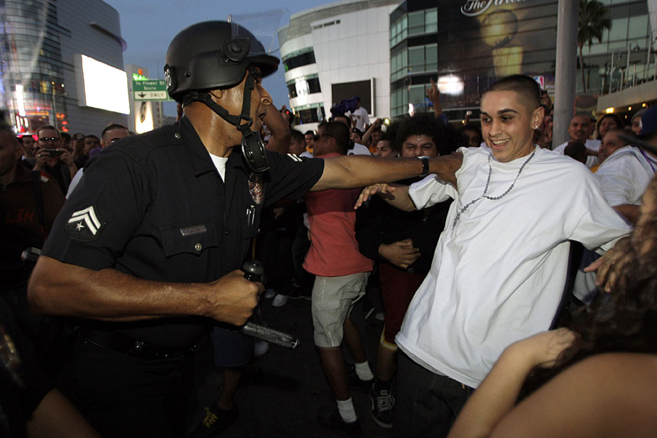 在洛杉磯湖人隊(duì)15日奪得本年度NBA總冠軍后,洛杉磯球迷涌上街頭歡慶勝利,但在慶祝過程中偶發(fā)暴力事件,警方逮捕了至少8人。