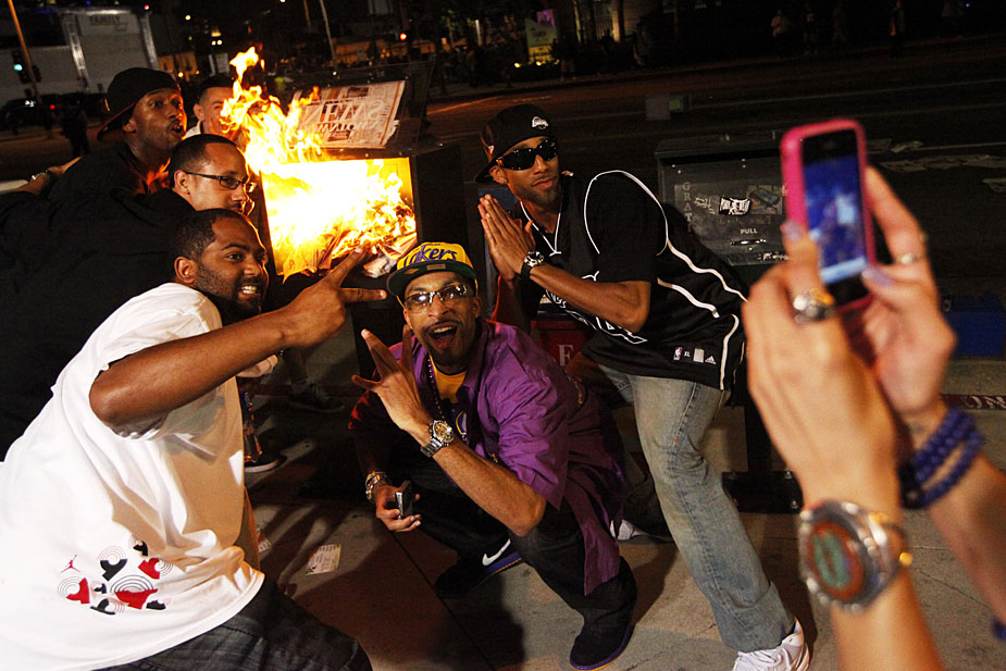 在洛杉磯湖人隊15日奪得本年度NBA總冠軍后,洛杉磯球迷涌上街頭歡慶勝利,但在慶祝過程中偶發(fā)暴力事件,警方逮捕了至少8人。