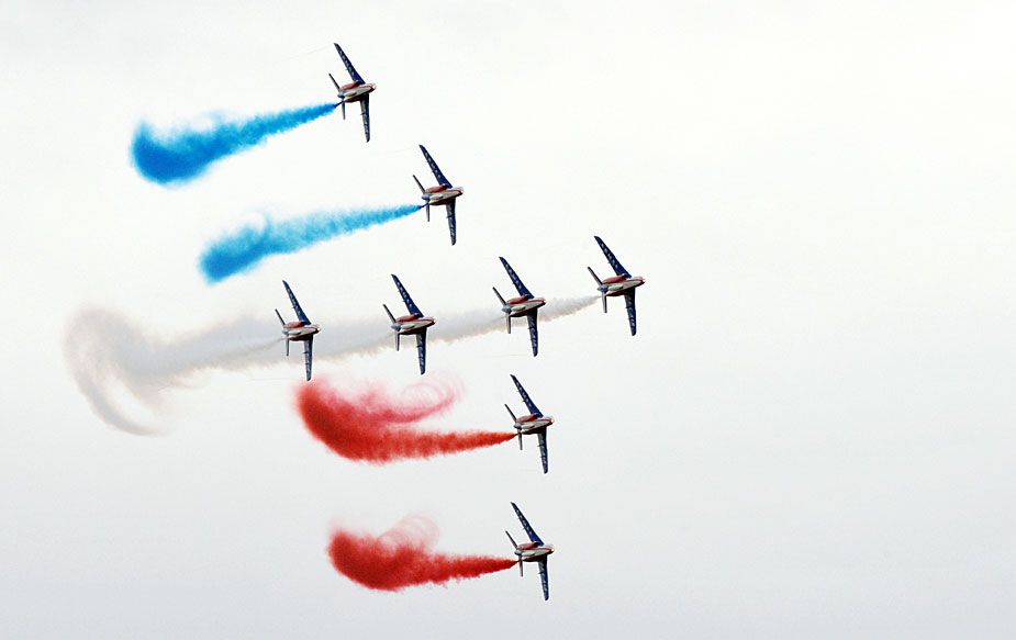 在闊別巴黎航展36年后,法軍“法蘭西巡邏兵”飛行表演隊20日再度登場,為第48屆巴黎航空航天展帶來一份驚喜。