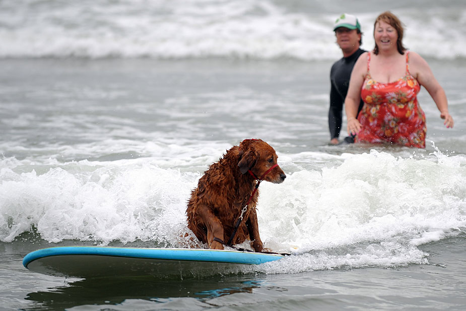 小狗沖浪比賽 讓人忍俊不禁