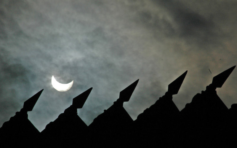7月22日上午,日全食在武漢劇院上空出現(xiàn)。 金木易/CFP