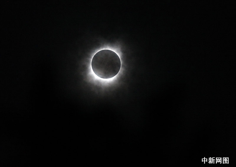 7月22日,在安徽中西部山區,天空濃云逐漸變淡后,所拍攝到的日全食景象。中新網記者 孫自法 攝