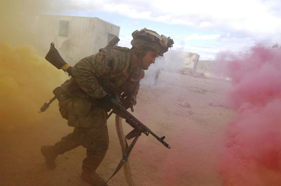 7月22日,澳大利亞羅克漢普頓,美國海軍陸戰隊與澳大利亞士兵參加“馬刀附身符行動”聯合巷戰軍事演習。此次演習的目的旨在提高兩國軍隊的巷戰作戰能力及美澳之間的協同作戰水平。